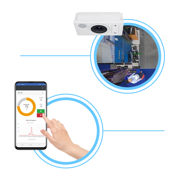 Contador manual a través del dashboard o con app disponible para Android e iOS. Automático con cámara de conteo 3D .